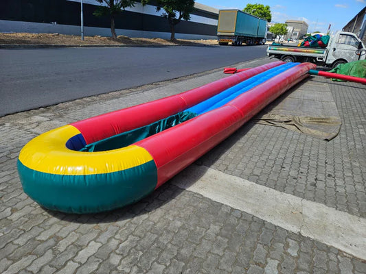 All our Inflatables are manufactured from very strong PVC. It is finished in semi gloss for easier cleaning. The semi gloss finish also has the added benefit of making your inflatable look newer for longer and makes for easier cleaning. Inflatables are made in bright colors, to assure you an attractive colorful fun item.