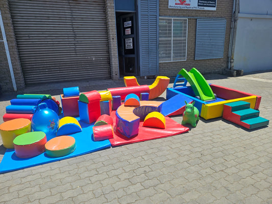 All our Soft Play is made from high density foam and covered in flame retardant PVC. We make use of high gloss PVC for easier cleaning and is non- toxic.