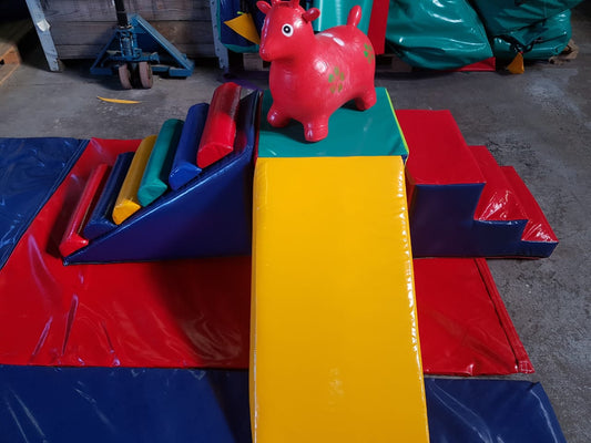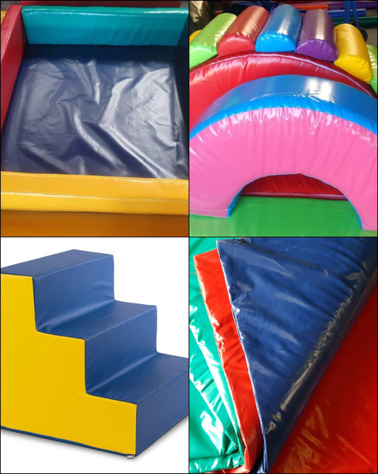 All our Soft Play is made from high density foam and covered in flame retardant PVC. We make use of high gloss PVC for easier cleaning and is non- toxic.