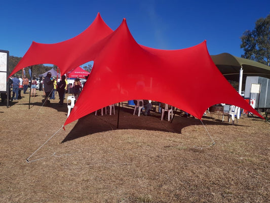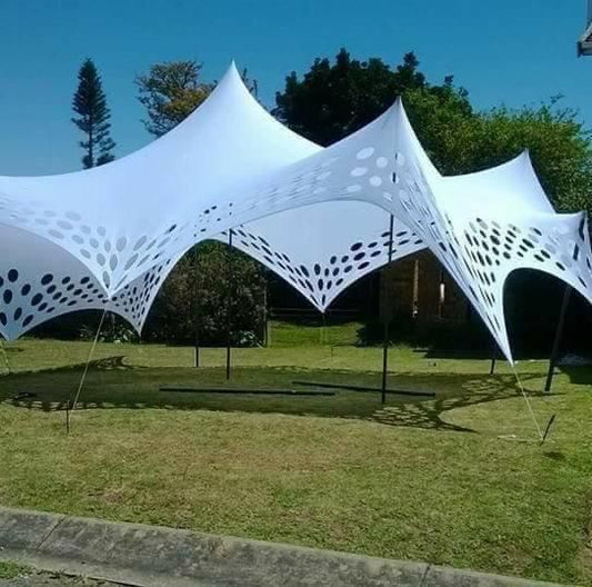 All our tents are manufactured out of a "4-way stretch" material. You can either choose between waterproof or non-waterproof stretch tents. The tents are perfect for events like birthday parties, funerals or weddings.